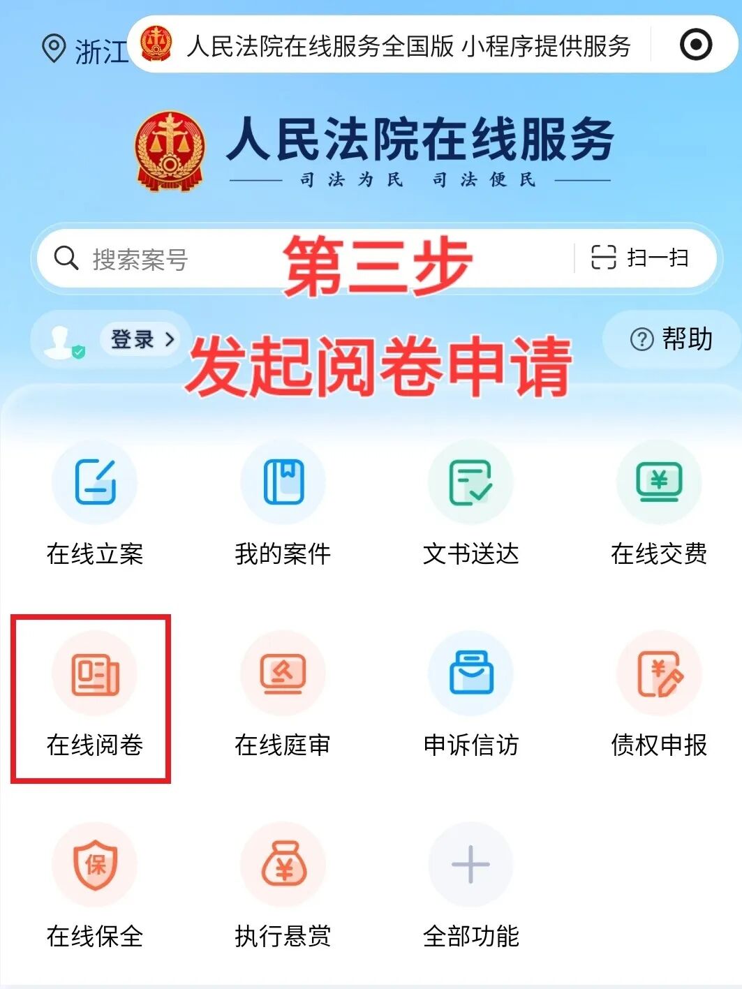 阅卷人可通过“人民法院在线服务全国版”微信小程序或人民法院在线服务网电脑端,便捷提交在线阅卷申请。