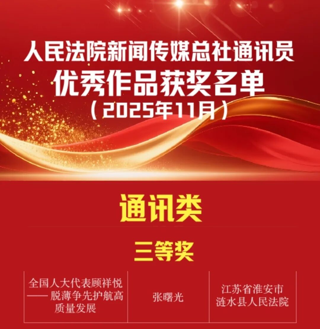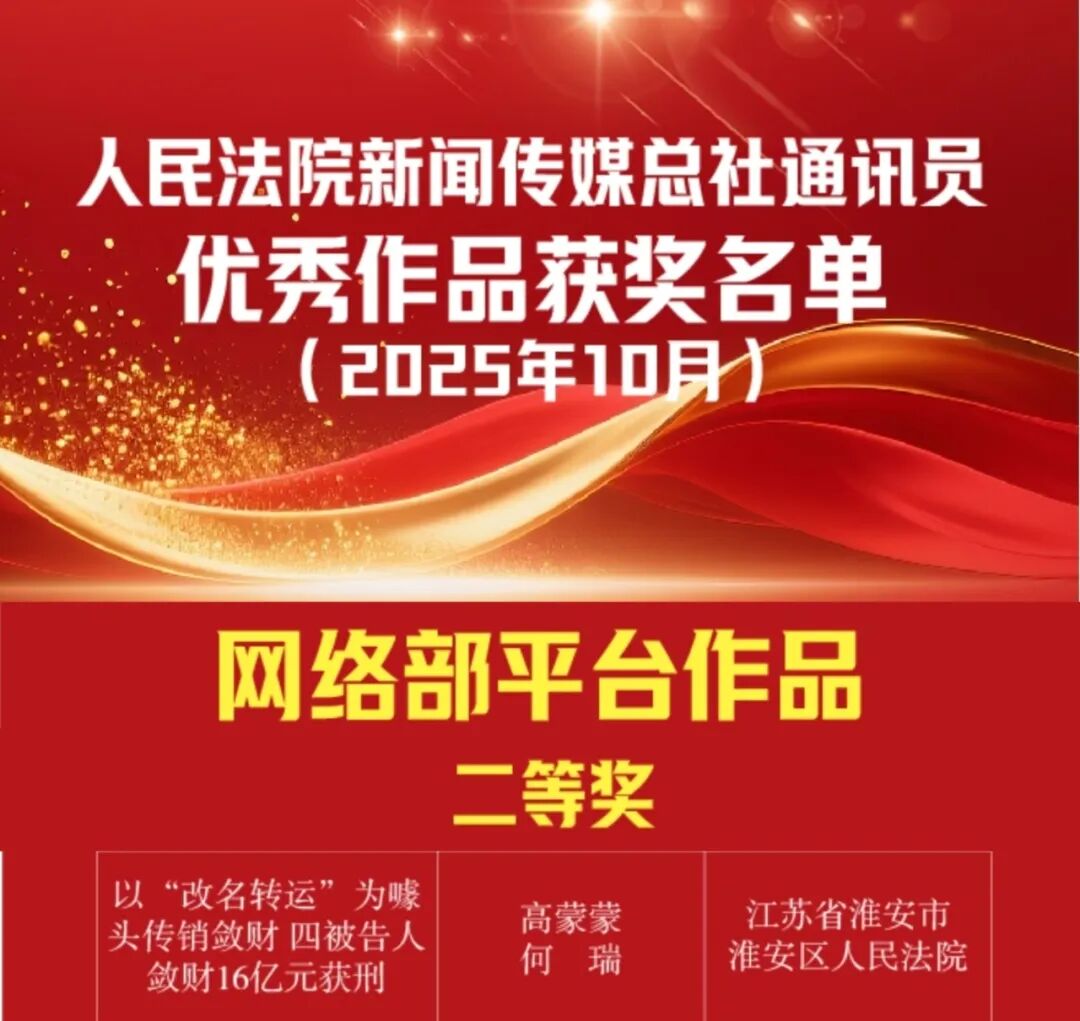近日,人民法院新闻传媒总社2025年9月至12月记者站记者和通讯员优秀作品获奖名单公布。其中,全市法院有6篇作品获奖。