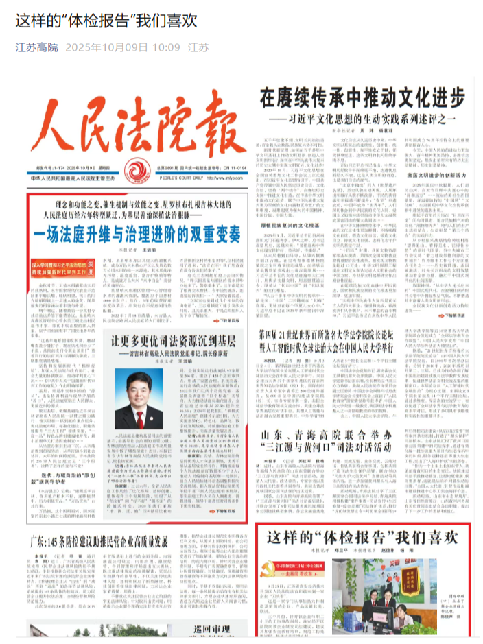 今日,《人民法院报》头版、最高人民法院、江苏高院微信公众号共同聚焦我市经开区法院在践行新时代“枫桥经验”中,通过创新司法建议工作机制,积极参与基层社会治理。