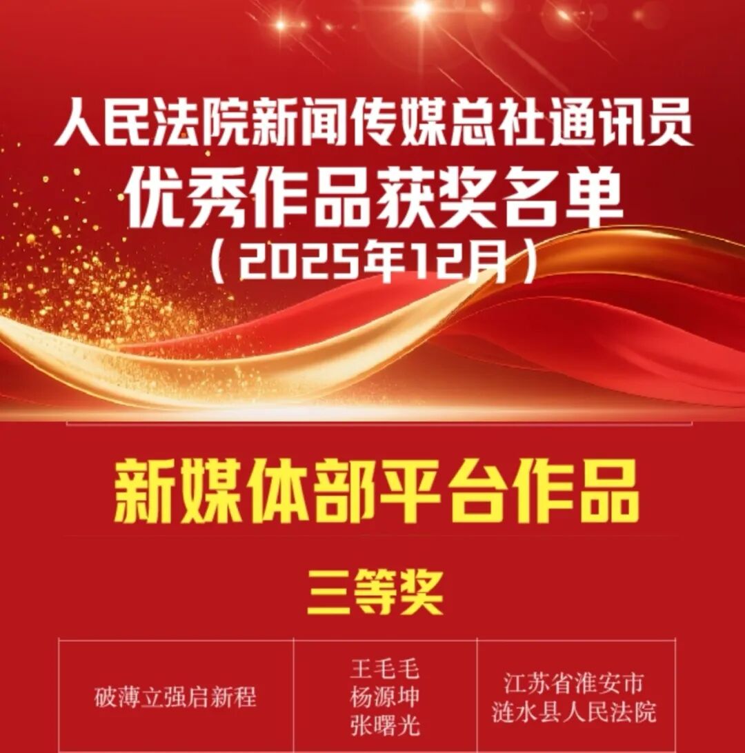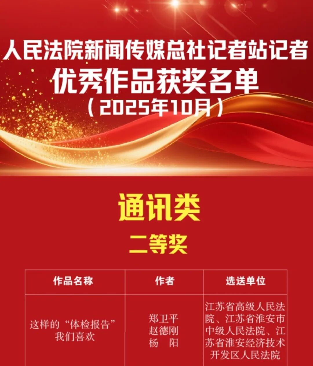 近日,人民法院新闻传媒总社2025年9月至12月记者站记者和通讯员优秀作品获奖名单公布。其中,全市法院有6篇作品获奖。