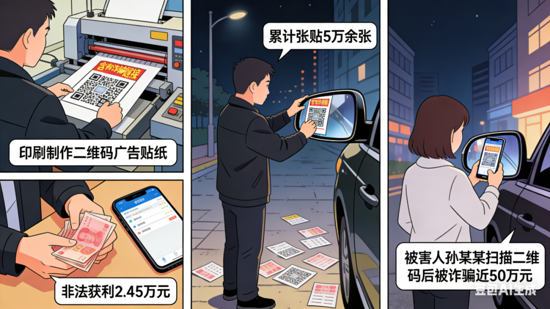 【基本案情】2025年1月至3月,被告人姚某为牟取非法利益,在明知他人实施电信网络诈骗犯罪活动的情况下,仍按照上家提供的诈骗网站信息,印刷制作含有该网站链接的二维码广告贴纸,并在淮安经济技术开发区、清江浦区等地,张贴于他人汽车后视镜上,累计张贴5万余张,非法获利2.45万元。被害人孙某某扫描姚某张贴广告的二维码后,登入网站链接被诈骗近50万元。